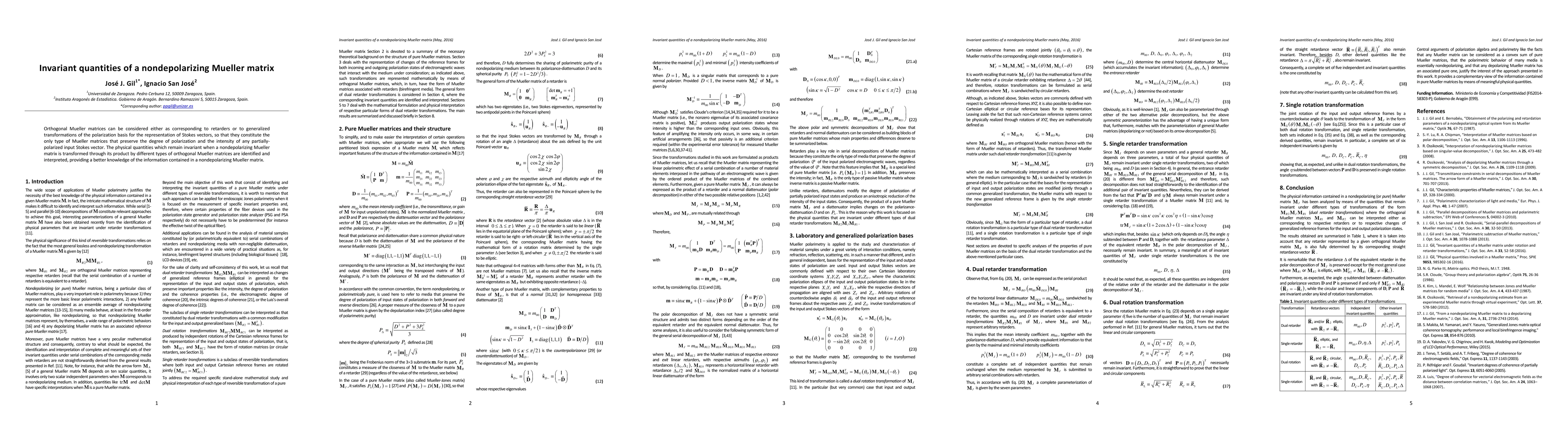 This paper identifies and interprets invariant quantities in nondepolarizing Mueller matrices, which preserve polarization degree and intensity, and explores how these quantities remain unchanged under orthogonal transformations, enhancing understanding of polarization information.