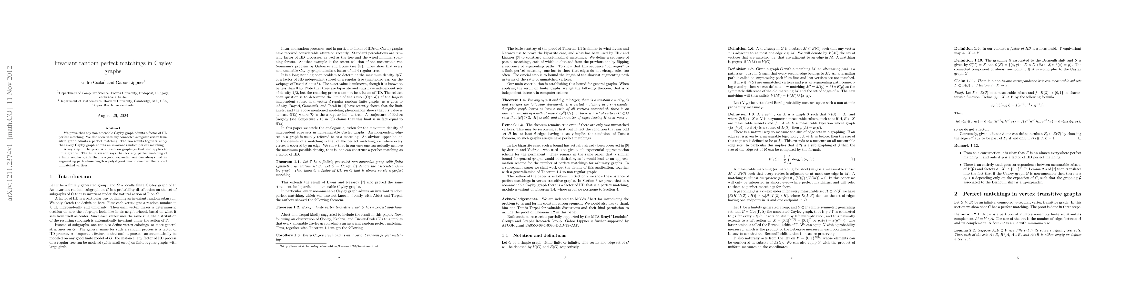 A new study proves that many types of graph structures, including Cayley graphs, can have a perfect matching, even if they aren't 'amenable' in certain cases. This discovery could lead to more efficient ways to solve problems involving these types of graphs.