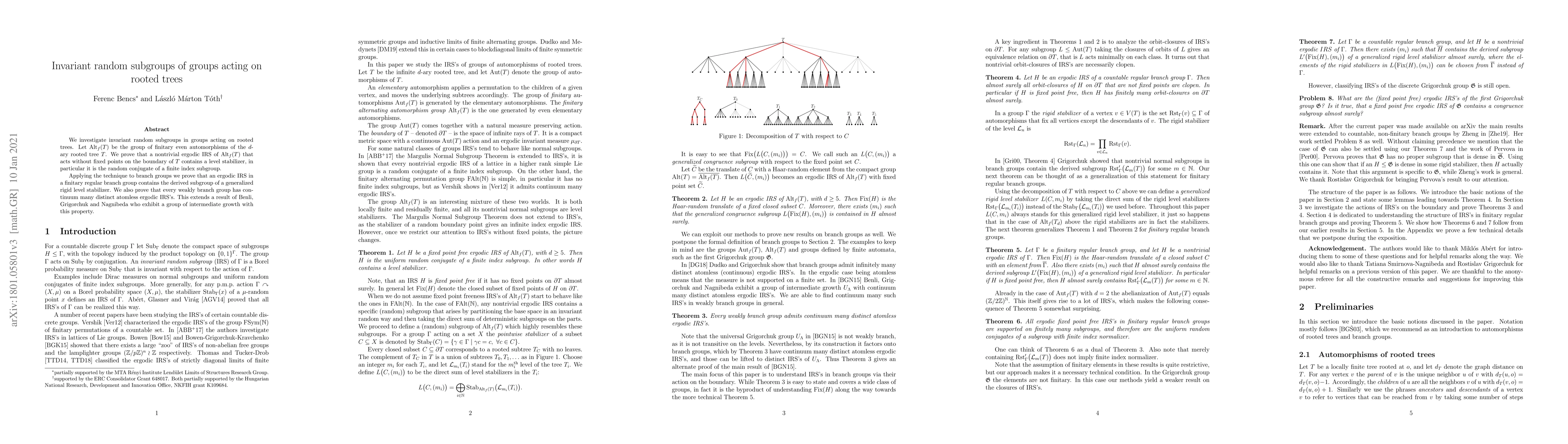 This paper studies invariant random subgroups (IRS) in groups acting on rooted trees, proving that nontrivial ergodic IRS in the group of finitary even automorphisms of a $d$-ary rooted tree, which act without fixed points, contain a level stabilizer. It further applies these results to branch groups, showing that ergodic IRS in finitary regular branch groups contain derived subgroups of generalized rigid level stabilizers, and demonstrates that every weakly branch group has a continuum of distinct atomless ergodic IRS.