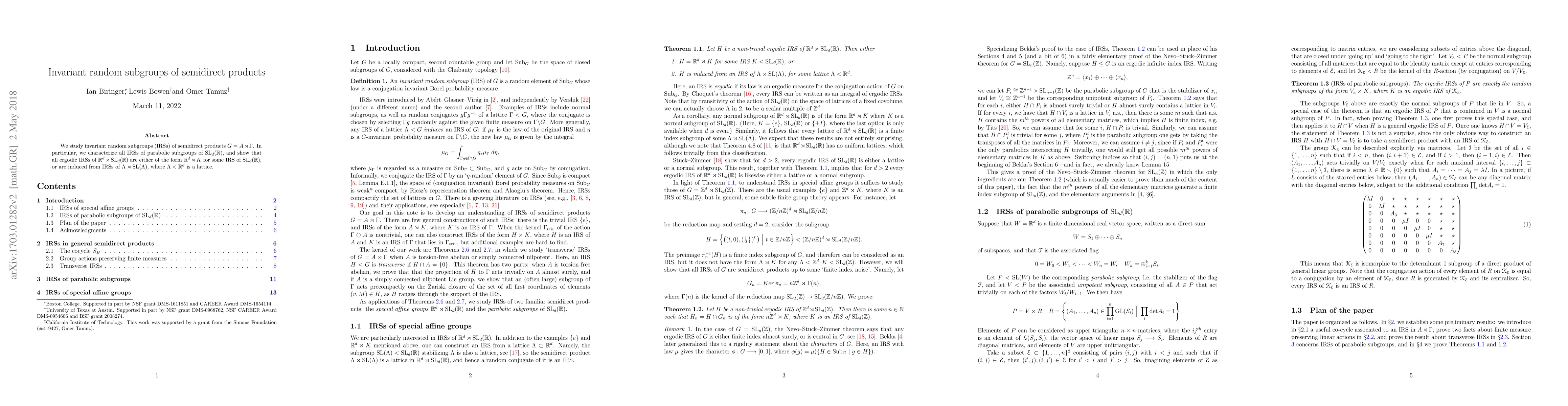 This paper characterizes invariant random subgroups (IRSs) of semidirect products, specifically focusing on parabolic subgroups of $\mathrm{SL}_d(\mathbb{R})$. It shows that all ergodic IRSs of $\mathbb{R}^d \rtimes \mathrm{SL}_d(\mathbb{R})$ are either of the form $\mathbb{R}^d \rtimes K$ or induced from IRSs of lattices.