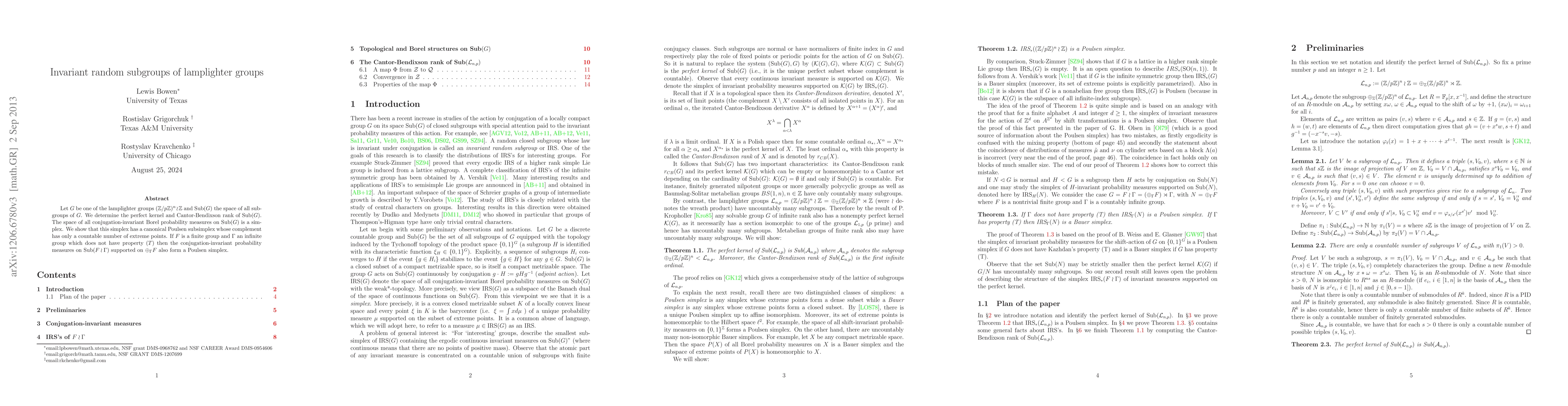 This paper investigates the invariant random subgroups of the lamplighter group, determining its perfect kernel and Cantor-Bendixson rank. It shows that the space of conjugation-invariant Borel probability measures forms a simplex with a canonical Poulsen subsimplex, and extends these results to a broader class of wreath products.
