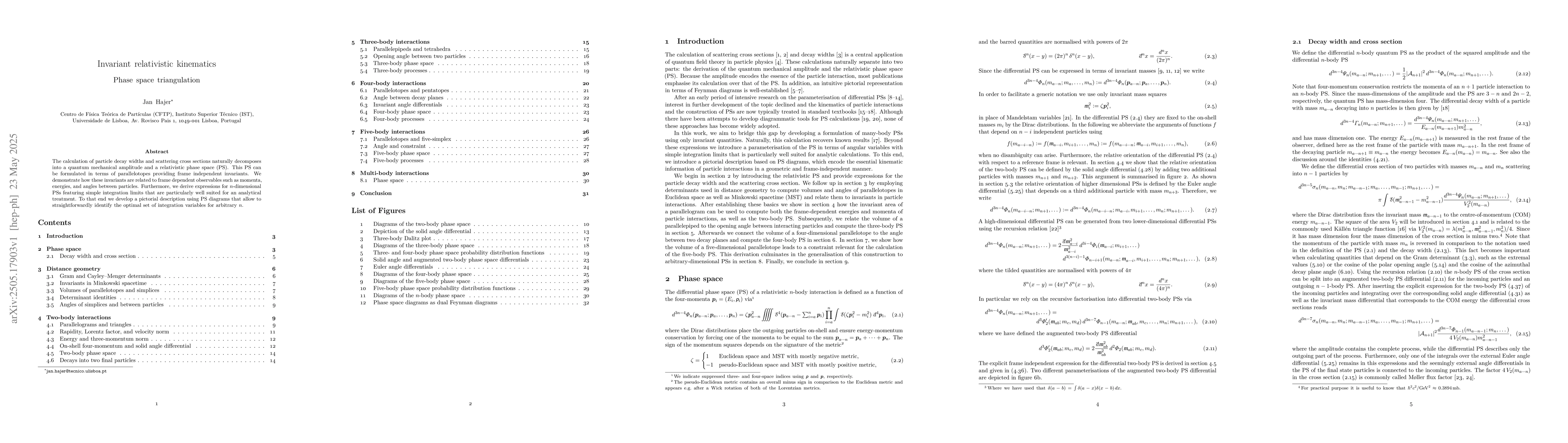 The paper presents a method using parallelotopes to formulate relativistic phase space (PS) invariants, independent of frames, and relates these to frame-dependent observables.