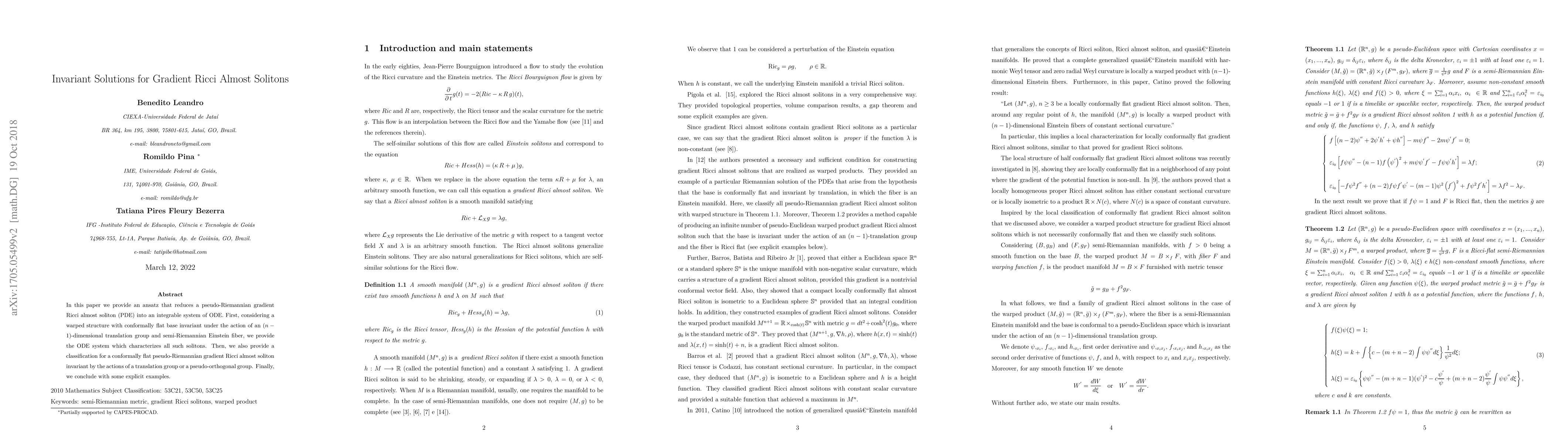 In this paper we show that all conformal metrics to a pseudo-euclidean space invariant under the translation group, and all the conformal metrics product manifold also invariant by translation where F m it is Ricci flat semi-Riemannian manifold, are gradient Ricci almost soliton. We also proved that all conformal metrics to a euclidean space and invariant by rotation are gradient Ricci almost soliton.