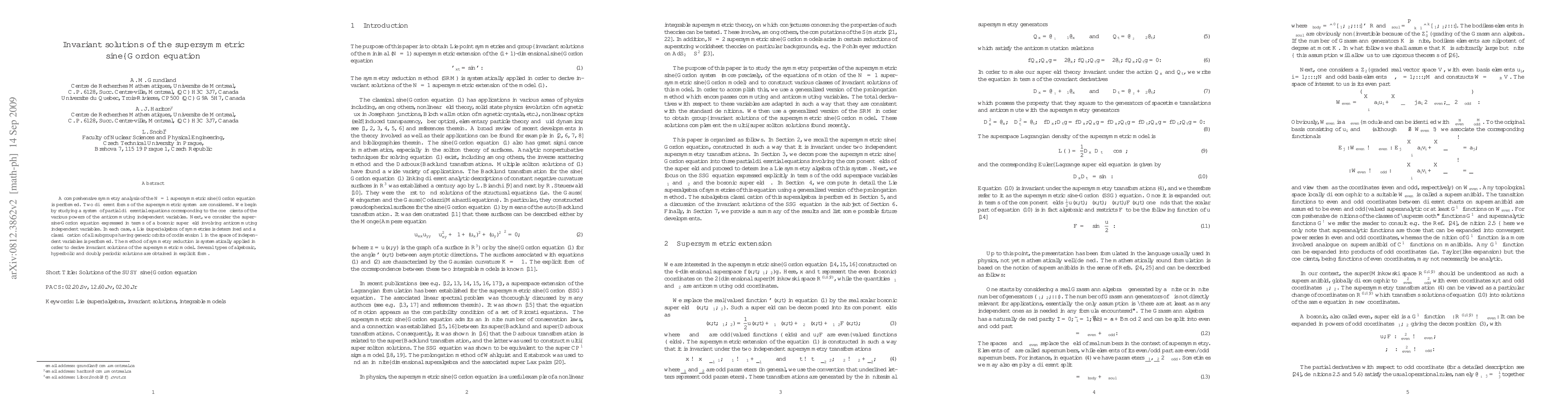 This paper conducts a symmetry analysis of the N=1 supersymmetric sine-Gordon equation, identifying invariant solutions through symmetry reduction methods. It classifies subgroups of symmetries and derives various algebraic, hyperbolic, and doubly periodic solutions explicitly.