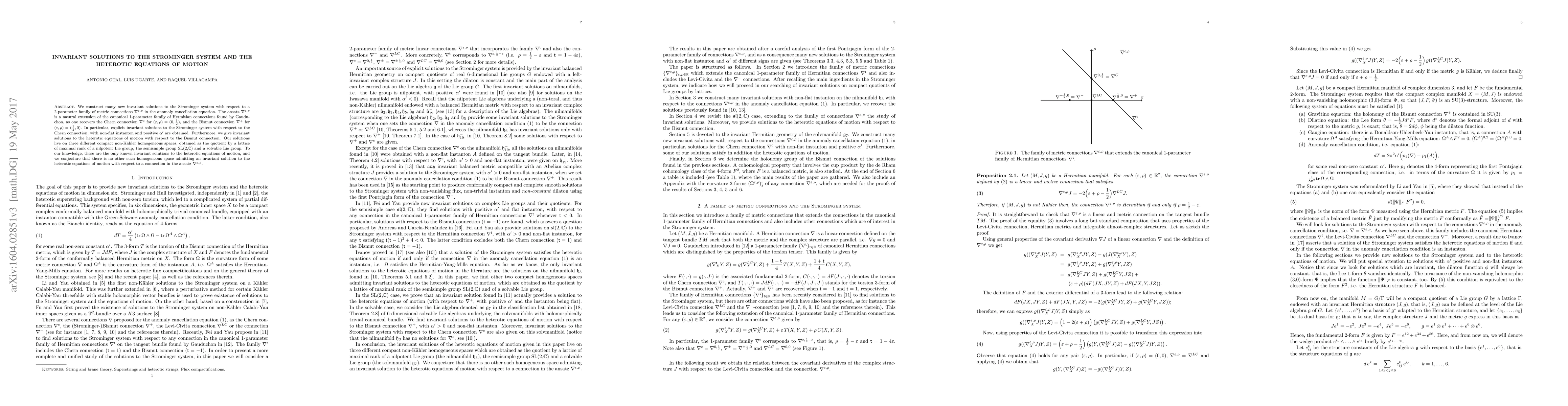 This paper constructs new invariant solutions to the Strominger system and the heterotic equations of motion using a 2-parameter family of metric connections. It provides explicit solutions for the Chern and Bismut connections and identifies three compact non-Kähler homogeneous spaces as the only known solutions to the heterotic equations of motion.
