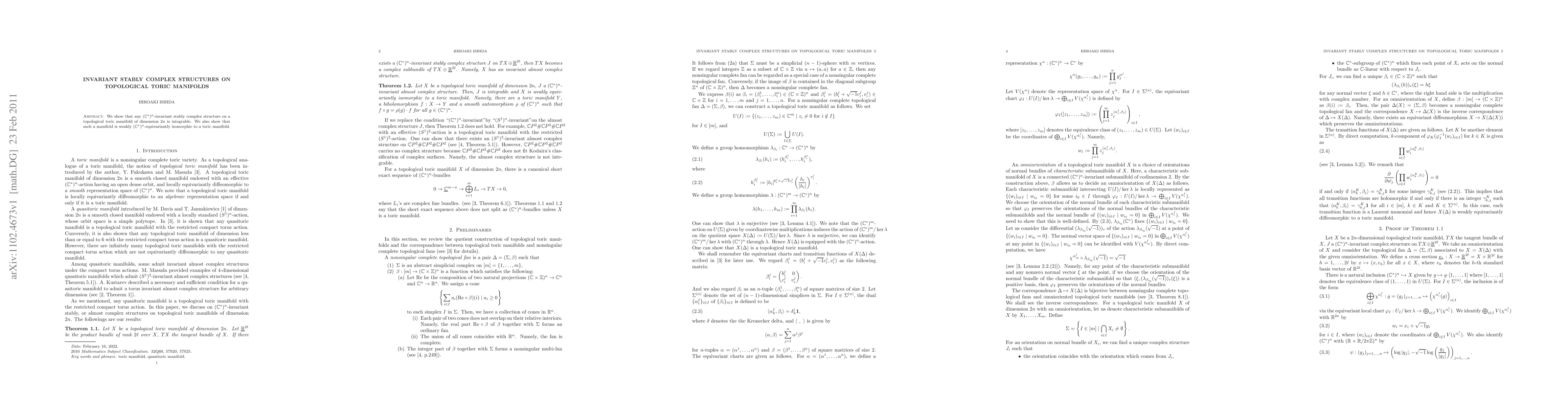We show that any $(\C ^*)^n$-invariant stably complex structure on a topological toric manifold of dimension $2n$ is integrable. We also show that such a manifold is weakly $(\C ^*)^n$-equivariantly isomorphic to a toric manifold.