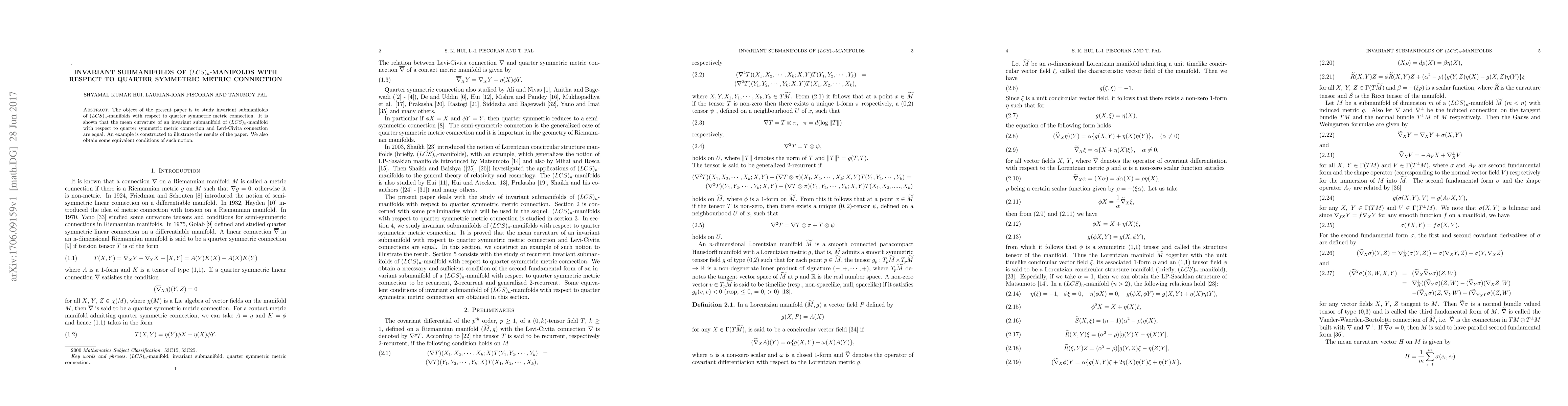 This paper investigates invariant submanifolds in (LCS)n-manifolds under a quarter symmetric metric connection, proving that their mean curvatures are equal to those under a Levi-Civita connection. An example is provided to illustrate the findings, along with equivalent conditions for these submanifolds.