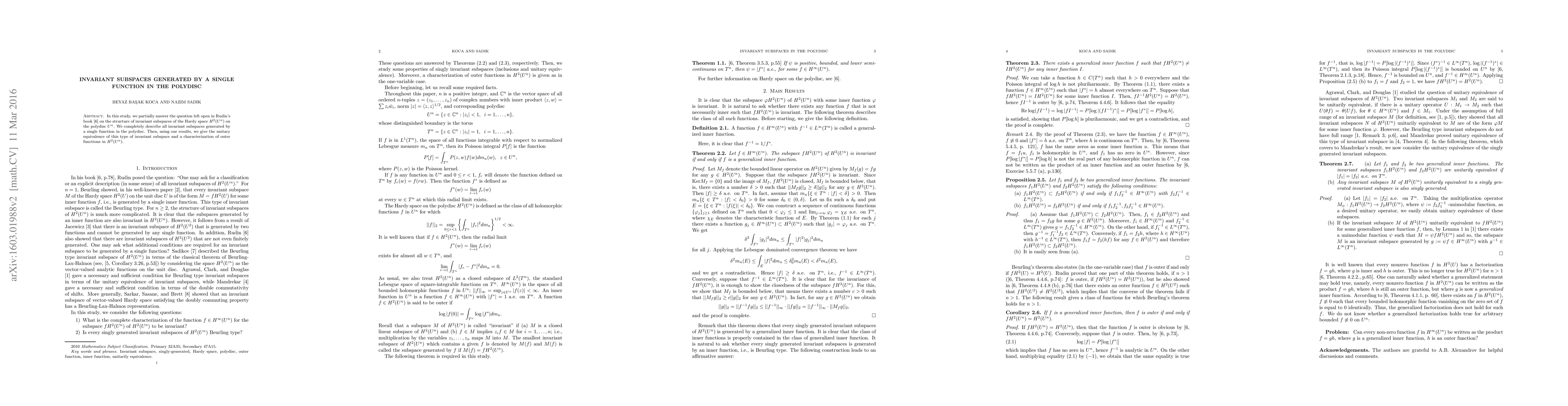 This research fully characterizes invariant subspaces in the Hardy space $H^2(U^n)$ generated by a single function within the polydisc $U^n$, providing a comprehensive answer to a question posed in Rudin's "Function theory in polydiscs" and establishing their unitary equivalence with outer functions in $H^2(U^n)$.