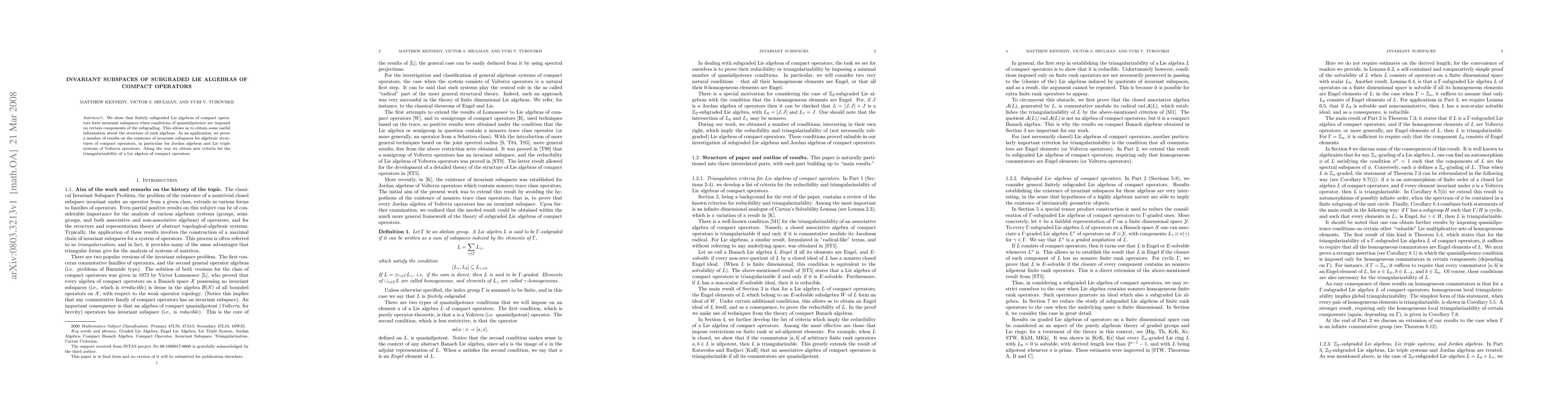 We show that finitely subgraded Lie algebras of compact operators have invariant subspaces when conditions of quasinilpotence are imposed on certain components of the subgrading. This allows us to obtain some useful information about the structure of such algebras. As an application, we prove a number of results on the existence of invariant subspaces for algebraic structures of compact operators. Along the way we obtain new criteria for the triangularizability of a Lie algebra of compact operators.