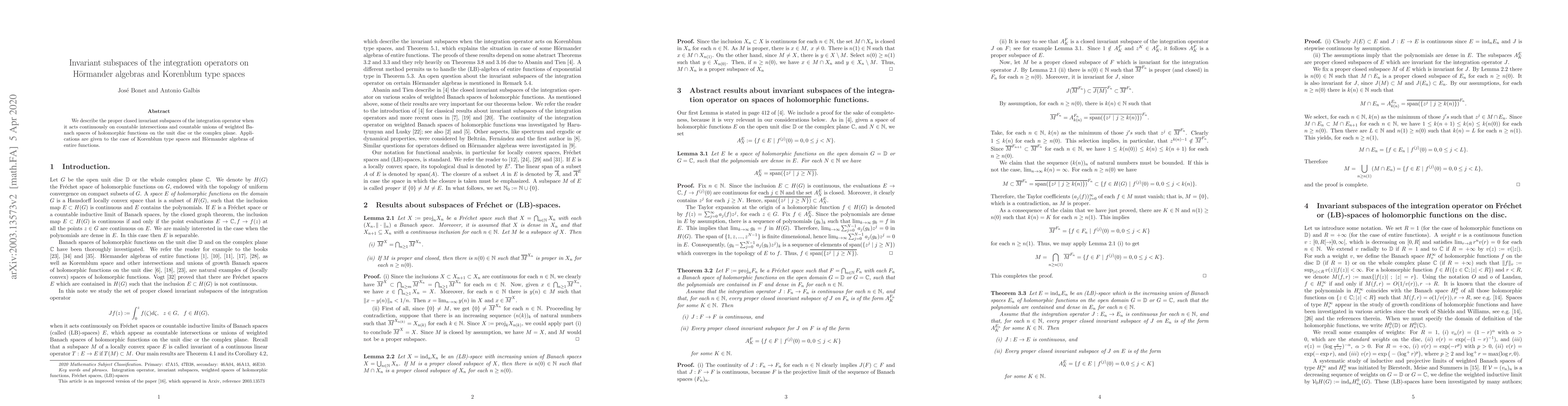 This paper investigates the invariant subspaces of integration operators acting on H\"ormander algebras and Korenblum type spaces, focusing on countable intersections and unions of weighted Banach spaces of holomorphic functions. It provides applications to these specific function spaces.