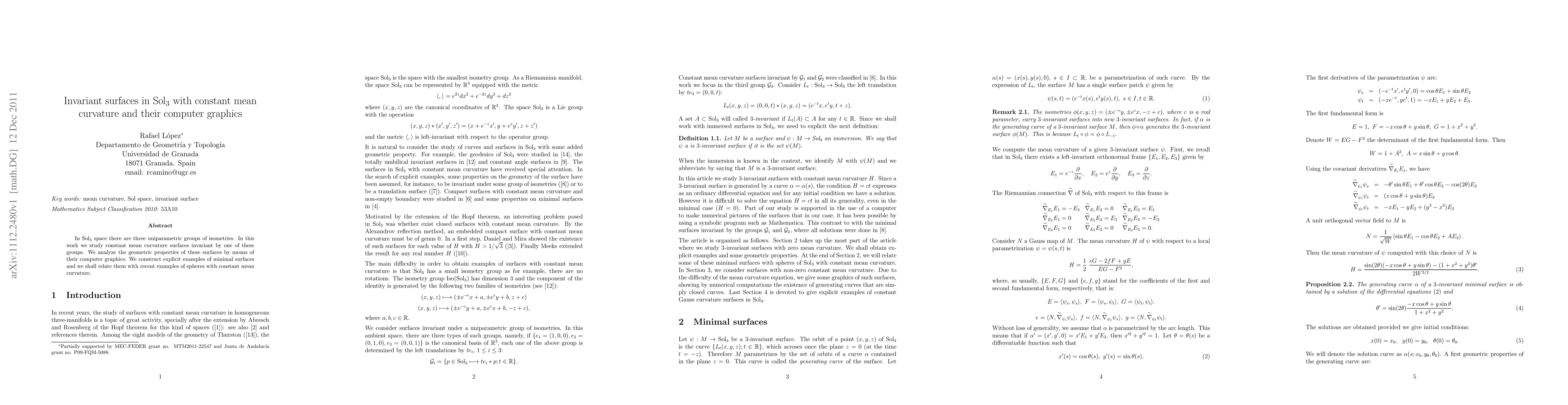 This paper investigates constant mean curvature surfaces in Sol$_3$ space invariant under one of the three uniparametric groups of isometries, analyzing their geometric properties using computer graphics. It constructs explicit examples of minimal surfaces and connects them with recent findings on spheres with constant mean curvature.
