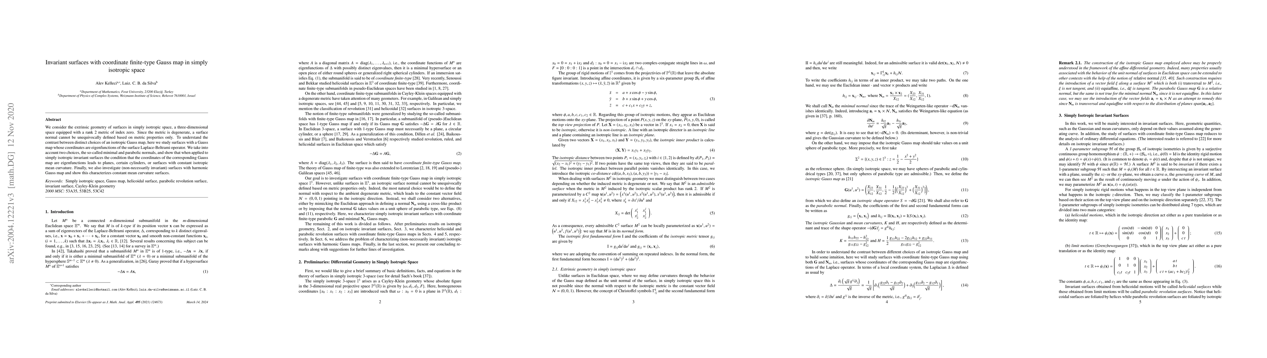 We consider the extrinsic geometry of surfaces in simply isotropic space, a three-dimensional space equipped with a rank 2 metric of index zero. Since the metric is degenerate, a surface normal cannot be unequivocally defined based on metric properties only. To understand the contrast between distinct choices of an isotropic Gauss map, here we study surfaces with a Gauss map whose coordinates are eigenfunctions of the surface Laplace-Beltrami operator. We take into account two choices, the so-called minimal and parabolic normals, and show that when applied to simply isotropic invariant surfaces the condition that the coordinates of the corresponding Gauss map are eigenfunctions leads to planes, certain cylinders, or surfaces with constant isotropic mean curvature. Finally, we also investigate (non-necessarily invariant) surfaces with harmonic Gauss map and show this characterizes constant mean curvature surfaces.