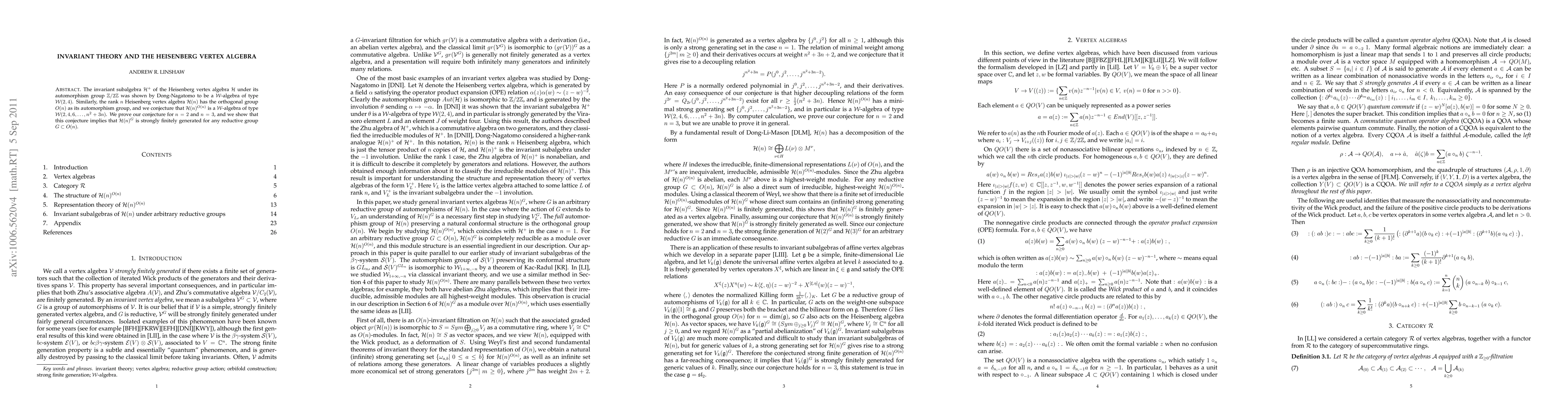 The invariant subalgebra H^+ of the Heisenberg vertex algebra H under its automorphism group Z/2Z was shown by Dong-Nagatomo to be a W-algebra of type W(2,4). Similarly, the rank n Heisenberg vertex algebra H(n) has the orthogonal group O(n) as its automorphism group, and we conjecture that H(n)^{O(n)} is a W-algebra of type W(2,4,6,...,n^2+3n). We prove our conjecture for n=2 and n=3, and we show that this conjecture implies that H(n)^G is strongly finitely generated for any reductive group G\subset O(n).