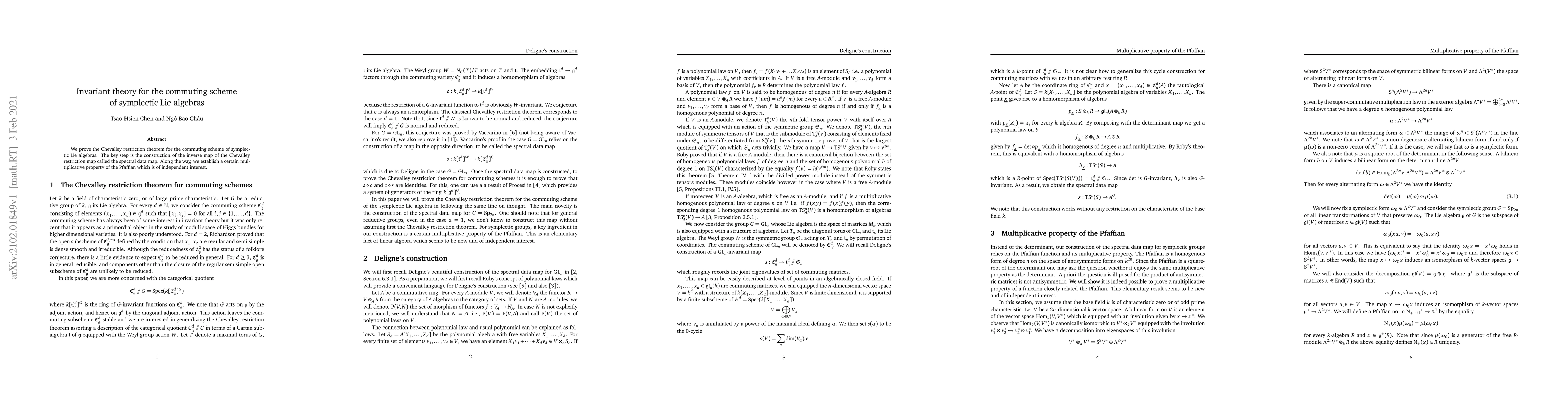 This paper proves the Chevalley restriction theorem for the commuting scheme of symplectic Lie algebras by constructing the spectral data map, which serves as the inverse of the Chevalley restriction map. Additionally, it establishes a new multiplicative property of the Pfaffian.