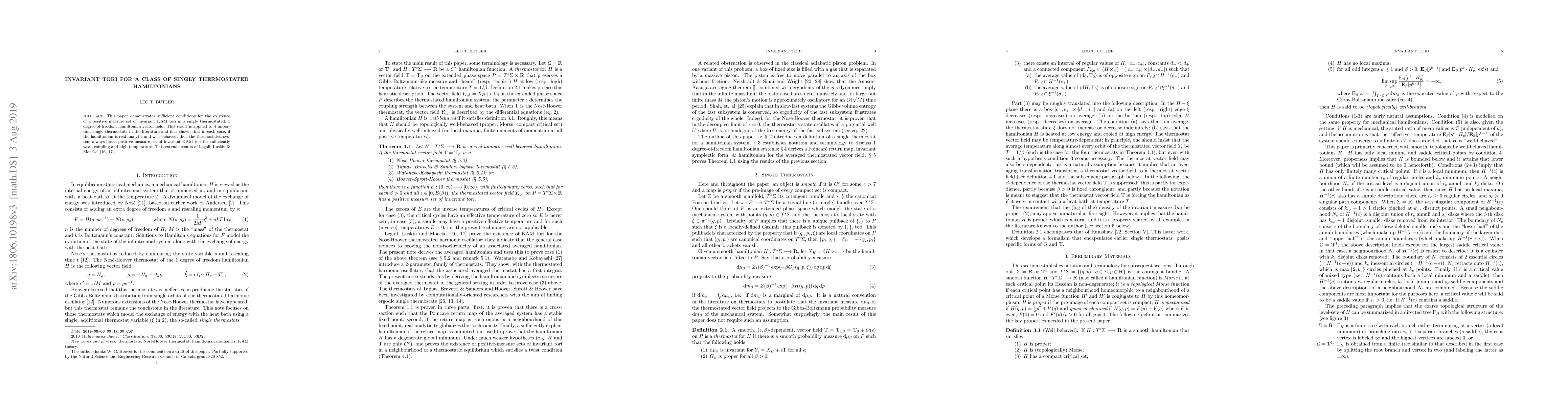 This paper establishes conditions for the existence of invariant KAM tori in singly thermostated Hamiltonian systems, showing that real-analytic, well-behaved Hamiltonians possess such tori under weak coupling and high temperature. This extends previous findings by Legoll, Luskin, and Moeckel.