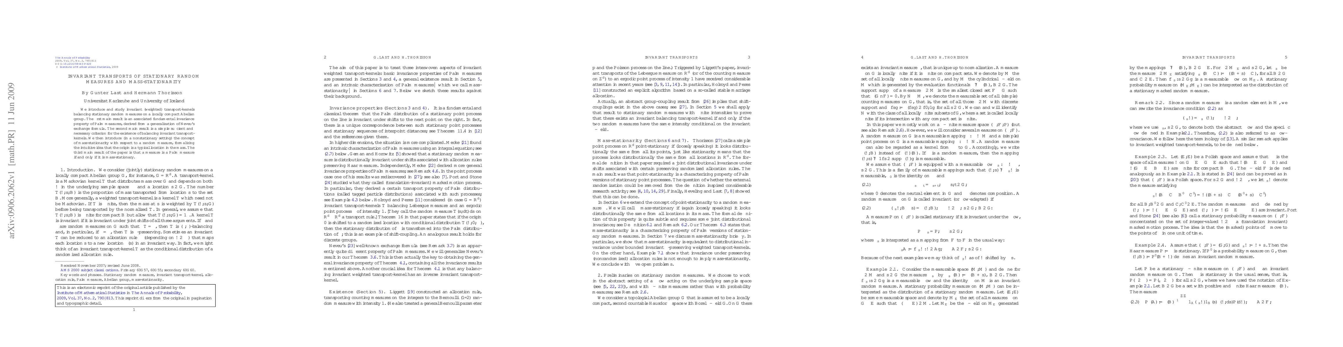 The research introduces and studies invariant (weighted) transport-kernels balancing stationary random measures on a locally compact Abelian group, deriving a fundamental invariance property of Palm measures from a generalization of Neveu's exchange formula.