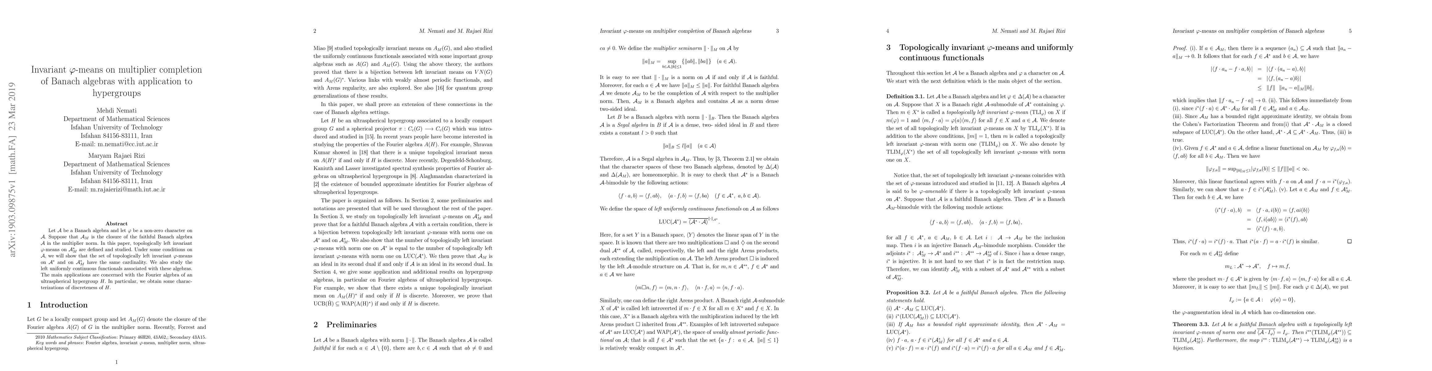 Let ${\mathcal A}$ be a Banach algebra and let $\varphi $ be a non-zero character on ${\mathcal A}$. Suppose that ${\mathcal A}_M$ is the closure of the faithful Banach algebra ${\mathcal A}$ in the multiplier norm. In this paper, topologically left invariant $\varphi$-means on ${\mathcal A}_M^*$ are defined and studied. Under some conditions on ${\mathcal A}$, we will show that the set of topologically left invariant $\varphi$-means on ${\mathcal A}^*$ and on ${\mathcal A}_M^*$ have the same cardinality. We also study the left uniformly continuous functionals associated with these algebras. The main applications are concerned with the Fourier algebra of an ultraspherical hypergroup $H$. In particular, we obtain some characterizations of discreteness of $H$.