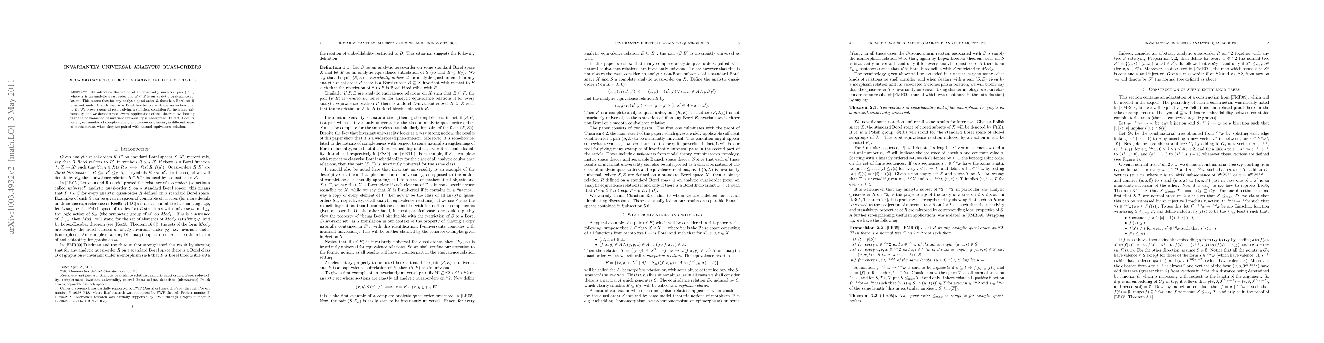 This paper introduces the concept of invariantly universal analytic quasi-orders, proving that certain pairs (S,E) are universally applicable across other analytic quasi-orders. The authors demonstrate that invariant universality is prevalent among complete analytic quasi-orders paired with natural equivalence relations.