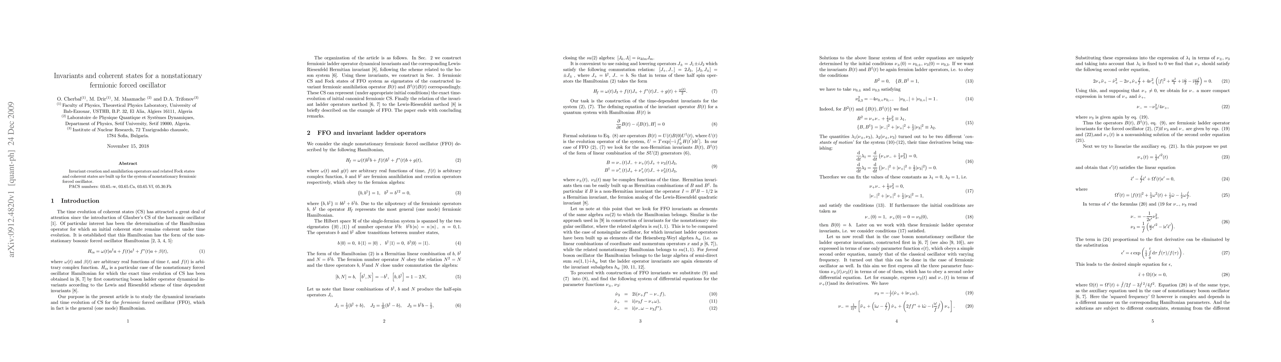 Invariant creation and annihilation operators and related Fock states and coherent states are built up for the system of nonstationary fermionic forced oscillator.