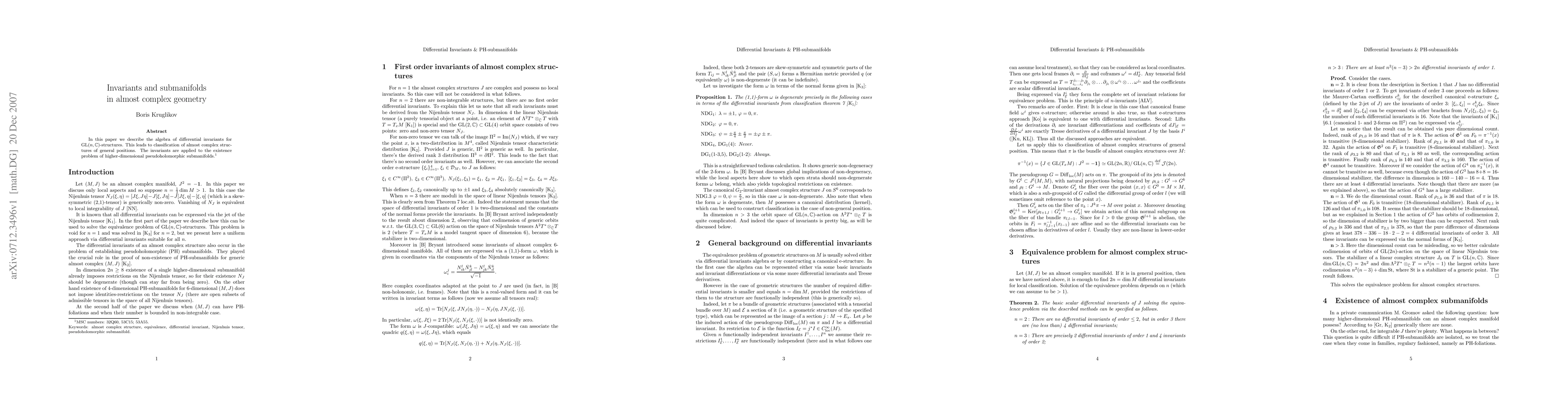 This paper classifies almost complex structures using differential invariants from GL(n,C)-structures and applies these invariants to determine the existence of higher-dimensional pseudoholomorphic submanifolds.