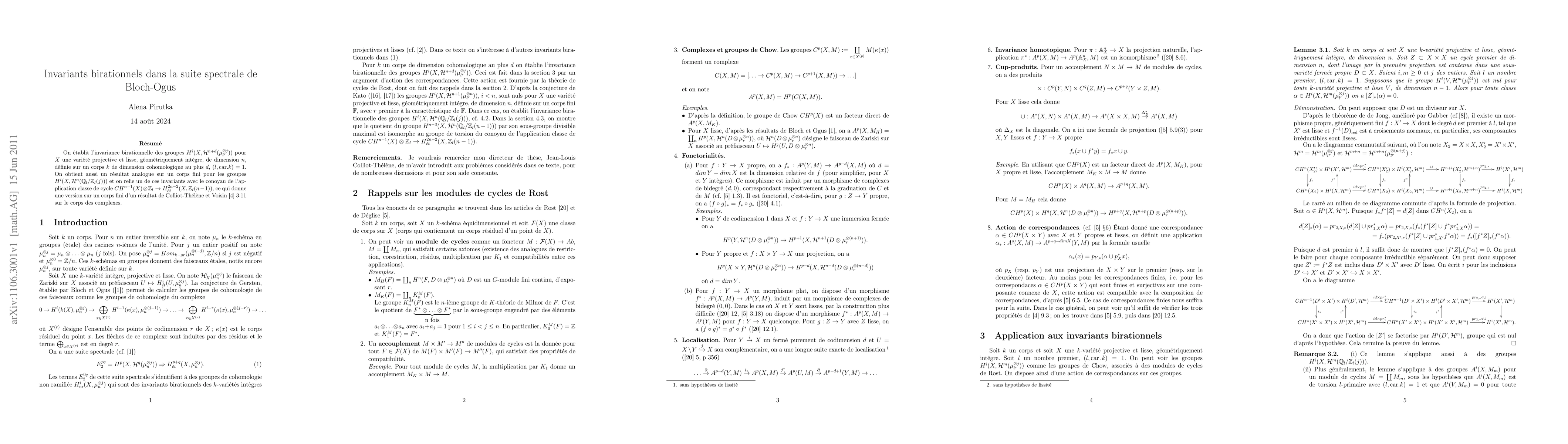 For a field k of cohomological dimension d we prove that some E_2-terms of the Bloch-Ogus spectral sequence are birational invariants of smooth projective geometrically integral varieties over k. Over a finite field, we relate one of these invariants with the cokernel of the l-adic cycle class map for 1-cycles. Soit k un corps de dimension cohomologique d. On \'etablit que certains E_2-termes de la suite spectrale de Bloch-Ogus sont des invariants birationnels des k-vari\'et\'es projectives et lisses, g\'eom\'etriquement int\`egres. Sur un corps fini, on relie un de ces invariants au conoyau de l'application classe de cycle l-adique \'etale pour les 1-cycles.