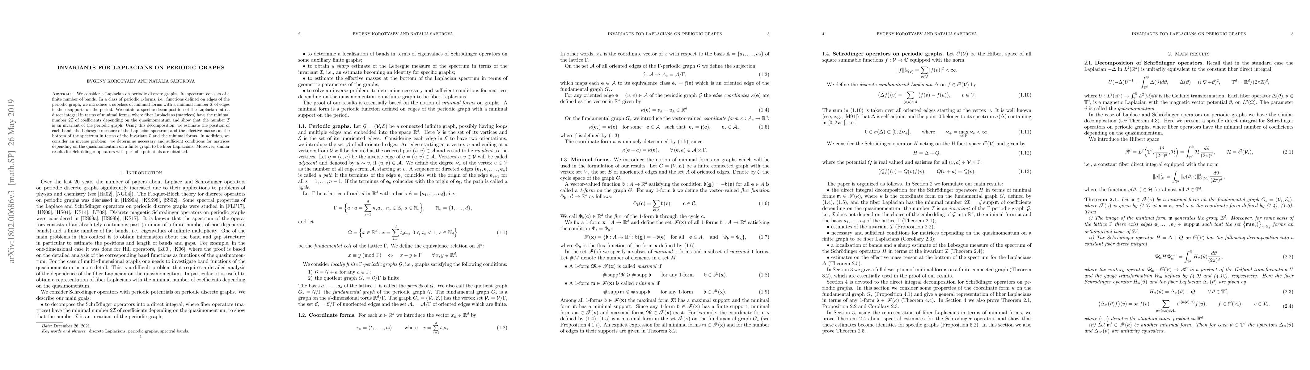 This paper decomposes the Laplacian on periodic graphs into minimal forms, revealing that the invariant $\cI$ representing the minimal number of edges is an invariant of the periodic graph. The study estimates spectral properties and provides conditions for matrices to be fiber Laplacians.