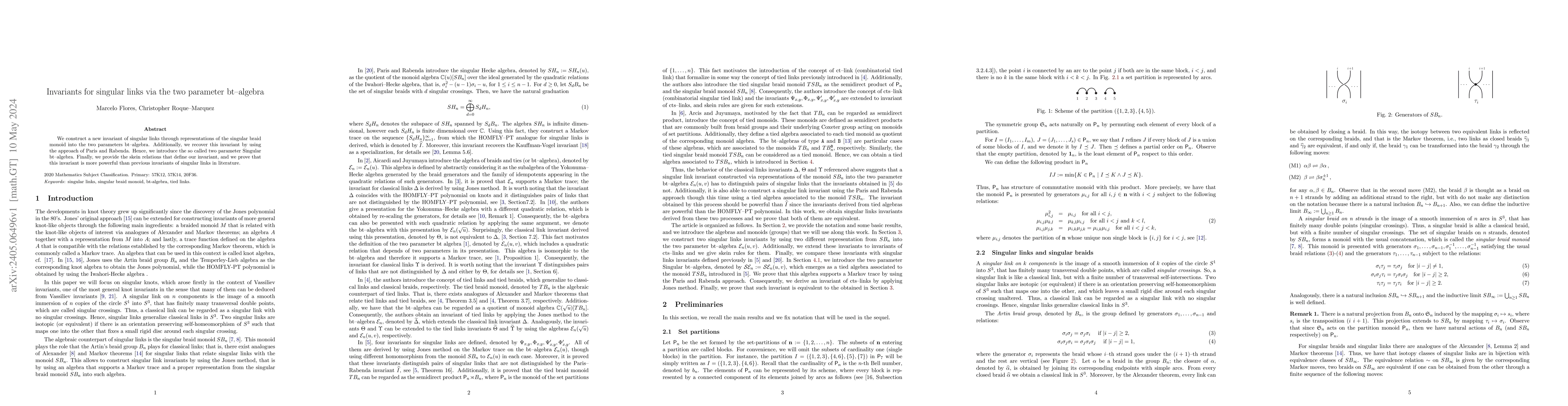 This paper introduces a new invariant for singular links via representations of the singular braid monoid into a two parameter bt-algebra, proving its superiority over existing invariants and providing the necessary skein relations. It also recovers this invariant using an alternative approach.