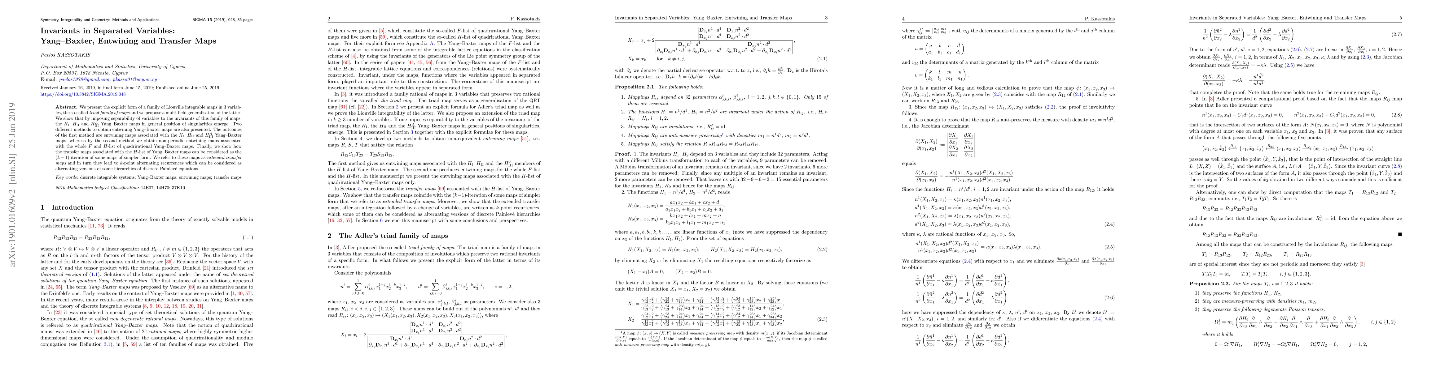 This paper introduces a family of Liouville integrable maps called the triad family and proposes a multi-field generalization. It demonstrates how separability leads to the emergence of $H_{\rm I}$, $H_{\rm II}$, and $H_{\rm III}^A$ Yang-Baxter maps, and presents two methods for obtaining entwining Yang-Baxter maps, including extended transfer maps leading to $k$-point alternating recurrences.