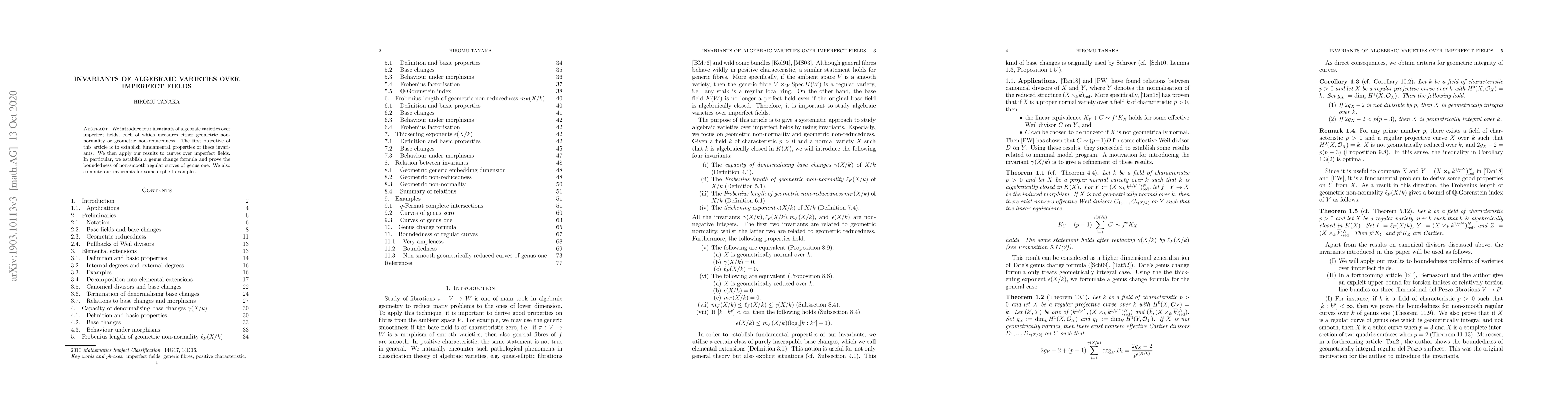 This paper introduces four invariants for algebraic varieties over imperfect fields, examining their fundamental properties and applications to curves. It proves a genus change formula and demonstrates the boundedness of non-smooth regular curves of genus one.