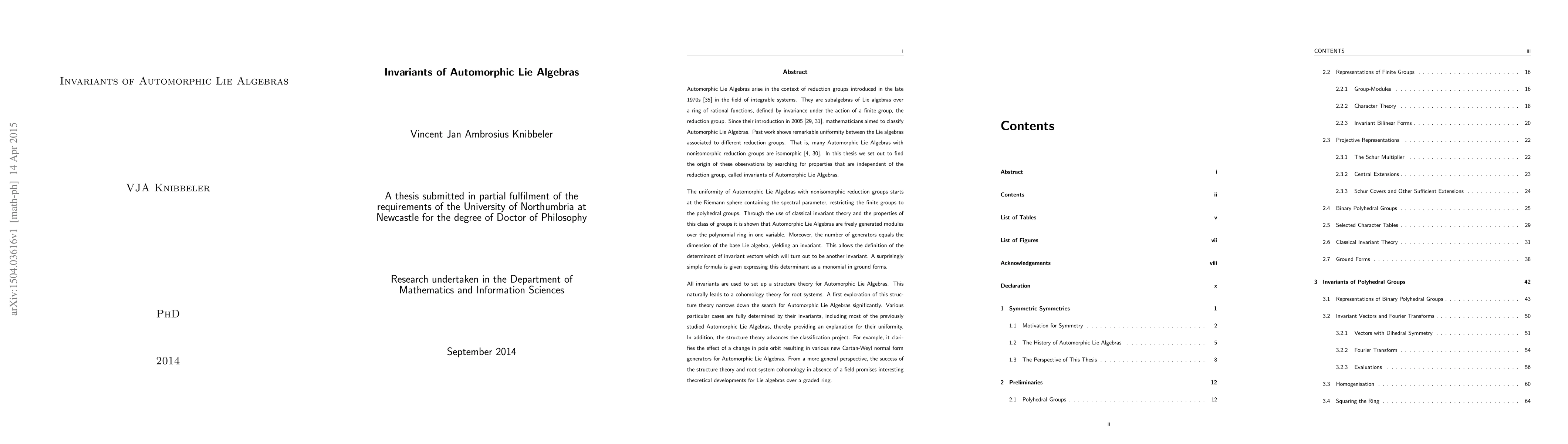 Automorphic Lie Algebras arise in the context of reduction groups introduced in the late 1970s in the field of integrable systems. They are subalgebras of Lie algebras over a ring of rational functions, defined by invariance under the action of a finite group, the reduction group. Since their introduction in 2005 a classification is pursued. Past work shows remarkable uniformity between the Lie algebras associated to different reduction groups. That is, many Automorphic Lie Algebras with nonisomorphic reduction groups are isomorphic. In this thesis we set out to find the origin of these observations by searching for properties that are independent of the reduction group, called invariants of Automorphic Lie Algebras. Several invariants are obtained and used to set up a structure theory for Automorphic Lie Algebras. This naturally leads to a cohomology theory for root systems. A first exploration of this structure theory narrows down the search for Automorphic Lie Algebras significantly. Various particular cases are fully determined by their invariants, including most of the previously studied Automorphic Lie Algebras, thereby providing an explanation for their uniformity. In addition, the structure theory advances the classification project. For example, it clarifies the effect of a change in pole orbit resulting in various new Cartan-Weyl normal form generators for Automorphic Lie Algebras. From a more general perspective, the success of the structure theory and root cohomology in absence of a field promises interesting theoretical developments for Lie algebras over a graded ring.