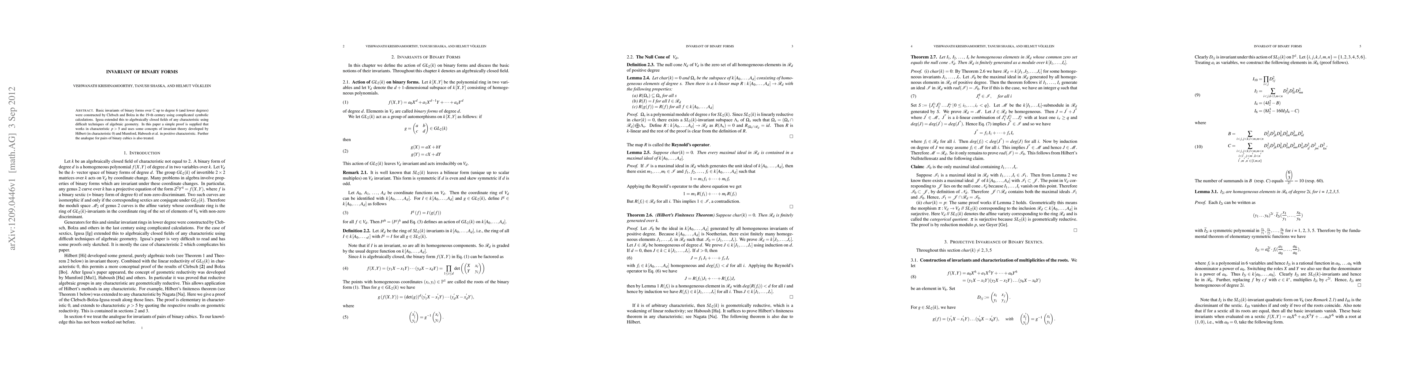 This paper provides a straightforward proof for constructing invariants of binary forms up to degree 6 in characteristic $p > 5$, leveraging concepts from invariant theory by Hilbert and Mumford. It also extends the treatment to pairs of binary cubics.