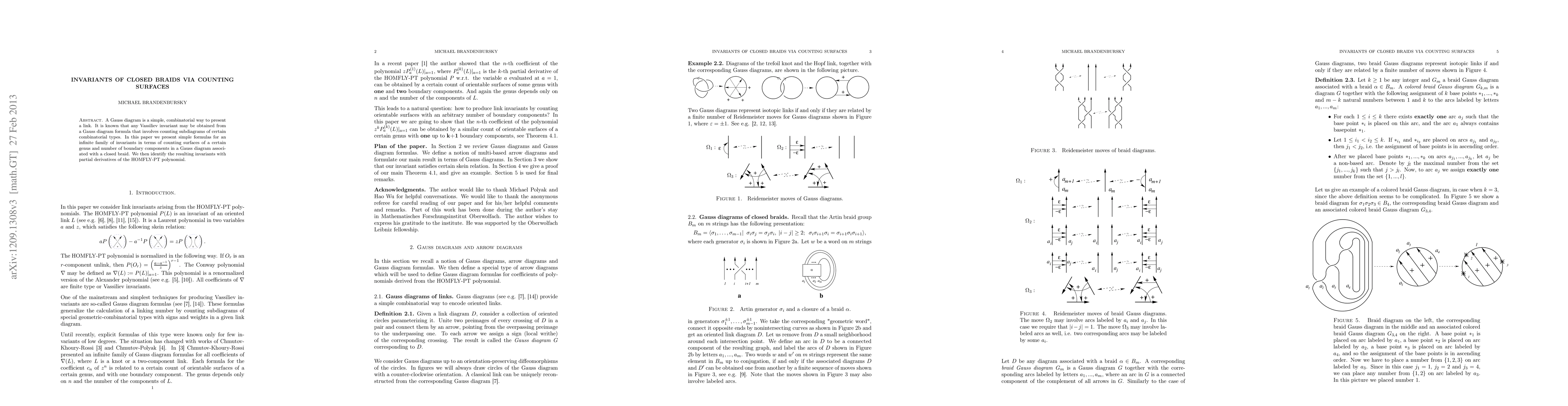 A Gauss diagram is a simple, combinatorial way to present a link. It is known that any Vassiliev invariant may be obtained from a Gauss diagram formula that involves counting subdiagrams of certain combinatorial types. In this paper we present simple formulas for an infinite family of invariants in terms of counting surfaces of a certain genus and number of boundary components in a Gauss diagram associated with a closed braid. We then identify the resulting invariants with partial derivatives of the HOMFLY-PT polynomial.