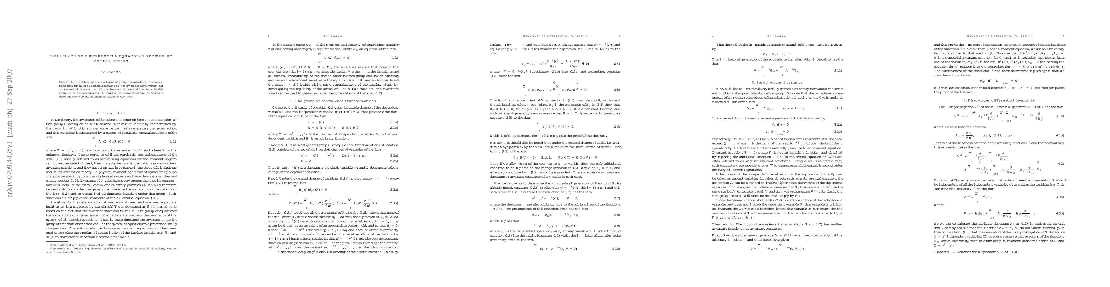 This paper identifies the most general group of equivalence transformations for differential equations defined by vector fields on manifolds and determines all invariants and differential invariants up to the second order. It also characterizes classes of these equations using invariant functions.