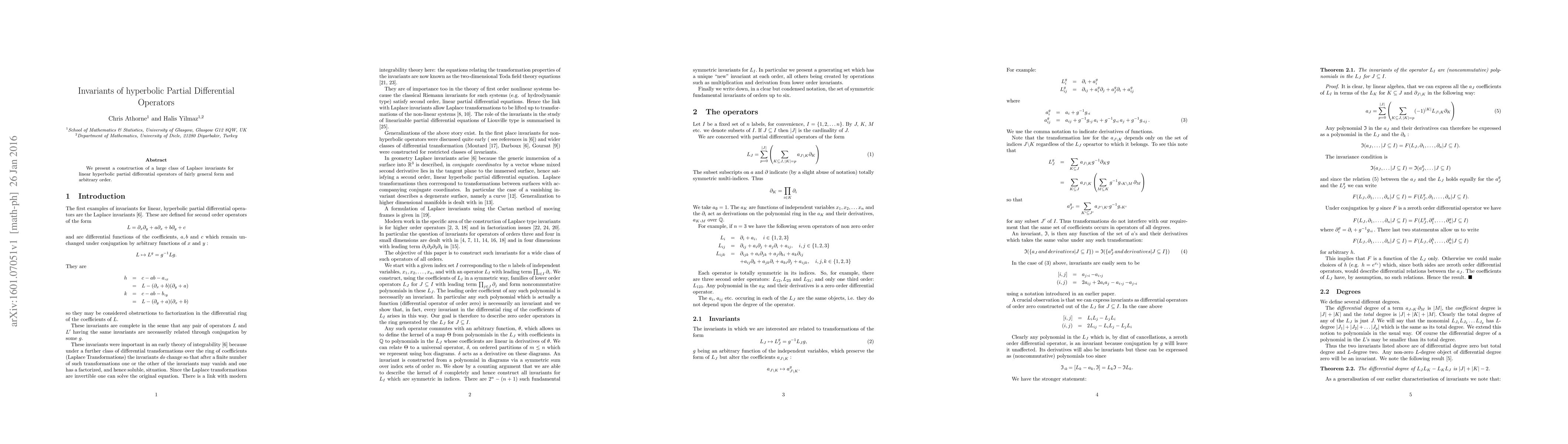 This paper constructs a wide range of Laplace invariants for linear hyperbolic partial differential operators of various forms and orders, enhancing our understanding of their properties. These invariants provide deeper insights into the structure and behavior of such operators.