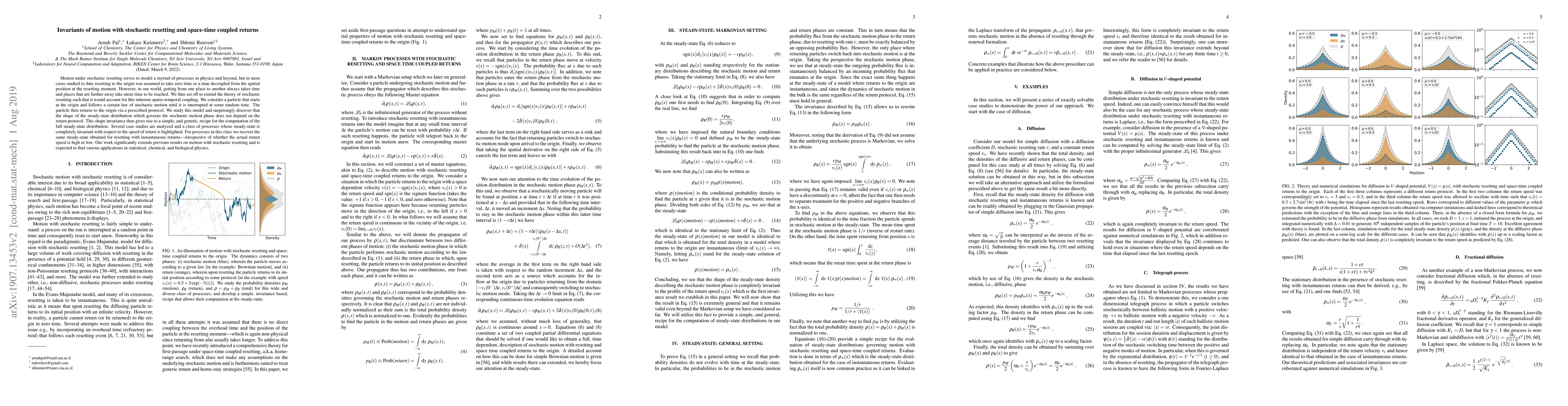 Motion under stochastic resetting serves to model a myriad of processes in physics and beyond, but in most cases studied to date resetting to the origin was assumed to take zero time or a time decoupled from the spatial position at the resetting moment. However, in our world, getting from one place to another always takes time and places that are further away take more time to be reached. We thus set off to extend the theory of stochastic resetting such that it would account for this inherent spatio-temporal coupling. We consider a particle that starts at the origin and follows a certain law of stochastic motion until it is interrupted at some random time. The particle then returns to the origin via a prescribed protocol. We study this model and surprisingly discover that the shape of the steady-state distribution which governs the stochastic motion phase does not depend on the return protocol. This shape invariance then gives rise to a simple, and generic, recipe for the computation of the full steady-state distribution. Several case studies are analyzed and a class of processes whose steady-state is completely invariant with respect to the speed of return is highlighted. For processes in this class we recover the same steady-state obtained for resetting with instantaneous returns---irrespective of whether the actual return speed is high or low. Our work significantly extends previous results on motion with stochastic resetting and is expected to find various applications in statistical, chemical, and biological physics.