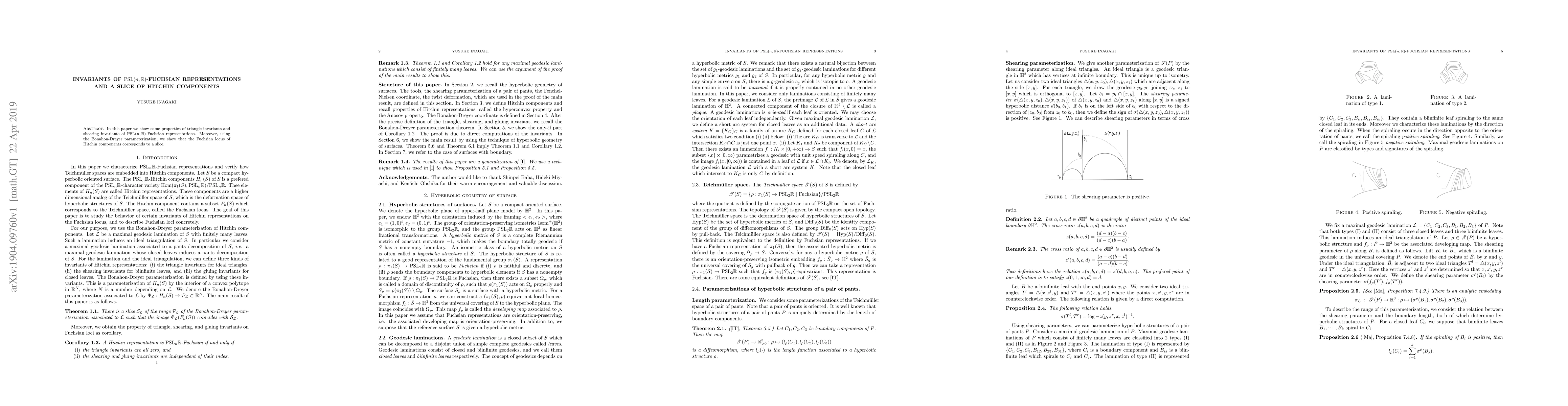 Summary: This paper explores triangle and shearing invariants in PSL(n,R)-Fuchsian representations, and demonstrates that the Fuchsian locus within Hitchin components aligns with a specific parameterized slice.
