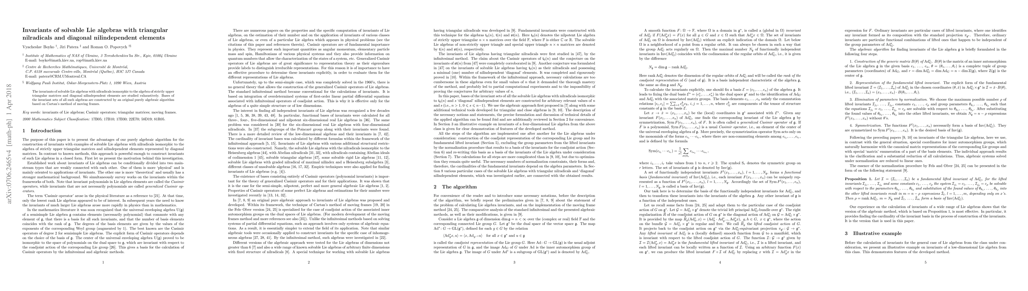 This paper explores the invariants of solvable Lie algebras characterized by triangular nilradicals and diagonal nilindependent elements. It constructs bases for invariant sets using a novel algebraic method inspired by Cartan's moving frames.