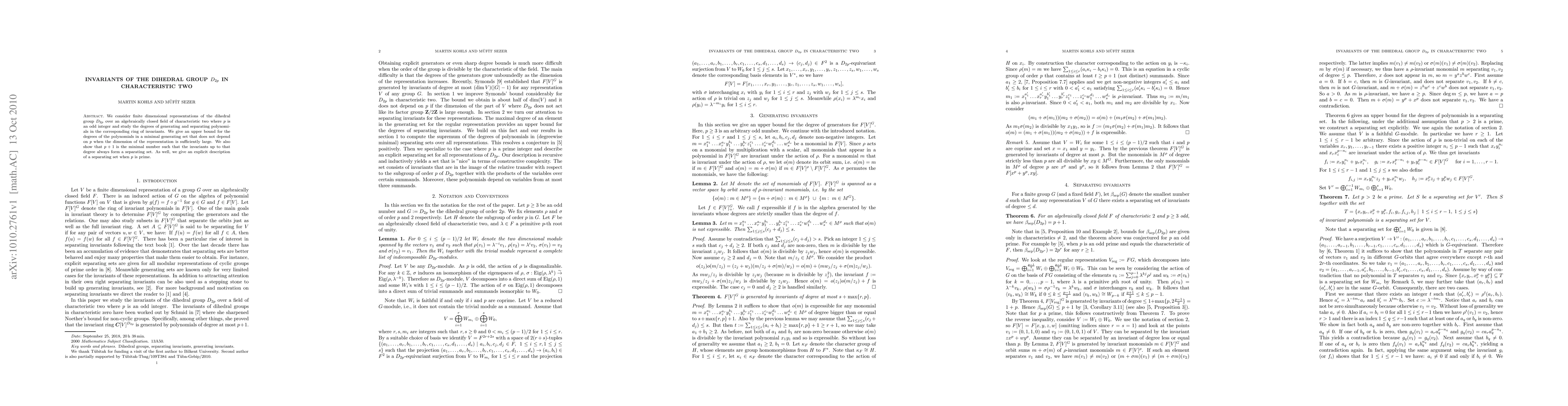 This paper investigates finite dimensional representations of the dihedral group $D_{2p}$ over a field of characteristic two, focusing on the degrees of generating and separating polynomials in the ring of invariants. It establishes an upper bound for the degrees of minimal generating polynomials and demonstrates that $p+1$ is the minimal degree for a separating set of invariants.