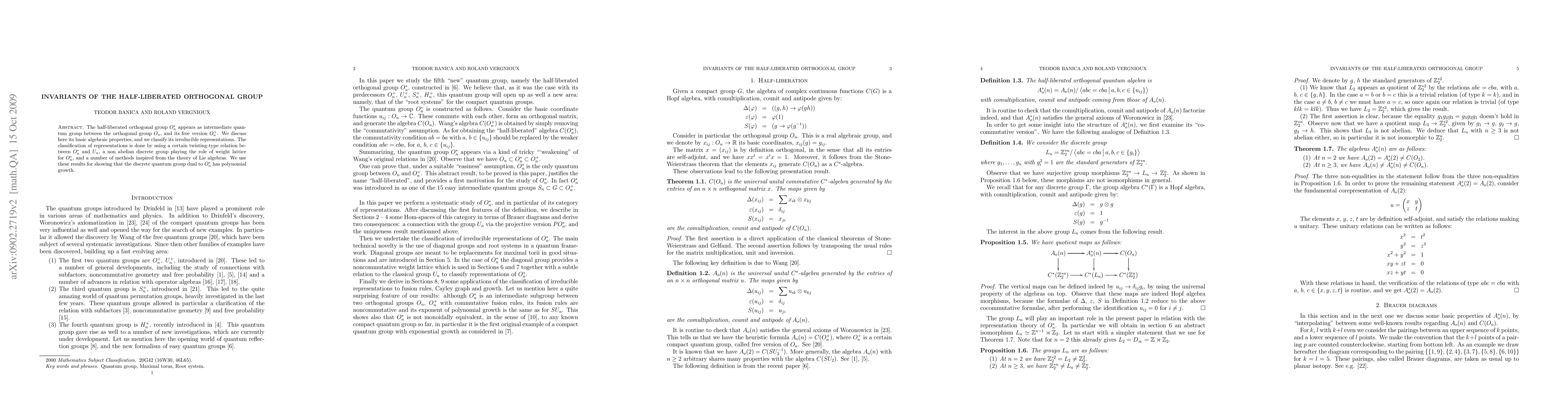 The half-liberated orthogonal group $O_n^*$ appears as intermediate quantum group between the orthogonal group $O_n$, and its free version $O_n^+$. We discuss here its basic algebraic properties, and we classify its irreducible representations. The classification of representations is done by using a certain twisting-type relation between $O_n^*$ and $U_n$, a non abelian discrete group playing the role of weight lattice for $O_n^*$, and a number of methods inspired from the theory of Lie algebras. We use these results for showing that the discrete quantum group dual to $O_n^*$ has polynomial growth.