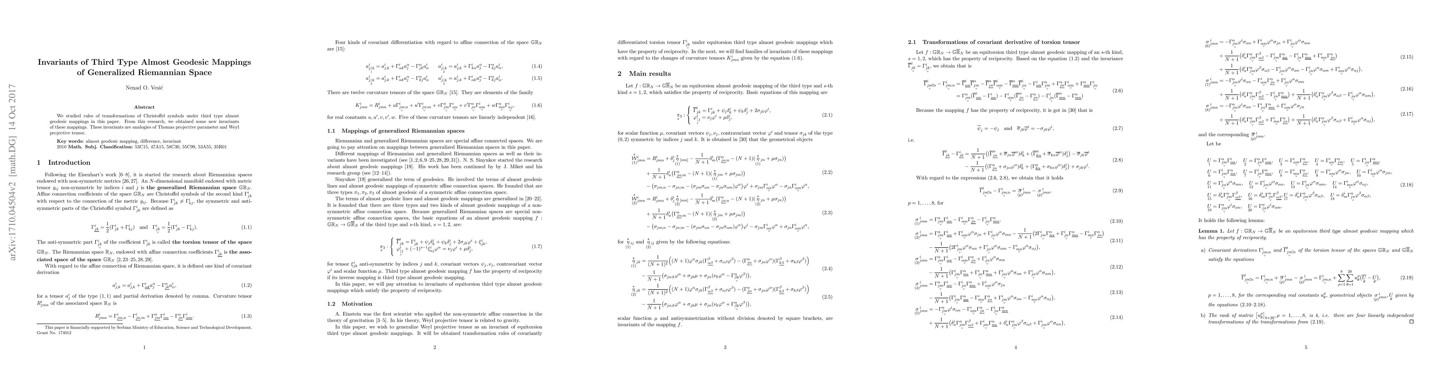 We studied rules of transformations of Christoffel symbols under third type almost geodesic mappings in this paper. From this research, we obtained some new invariants of these mappings. These invariants are analogies of Thomas projective parameter and Weyl projective tensor.