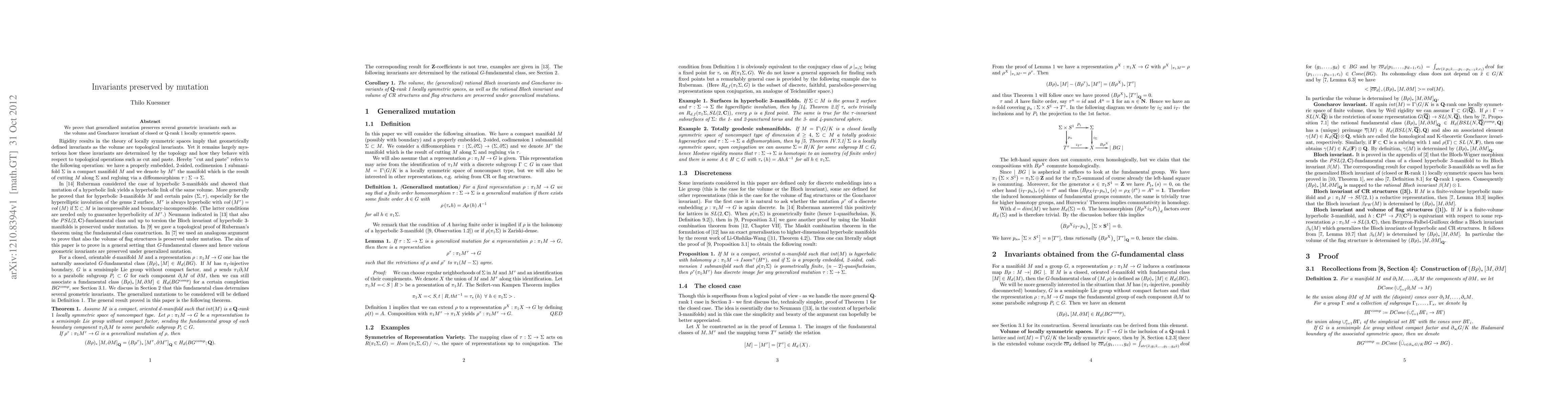 Summary: This paper demonstrates that generalized mutation maintains geometric invariants like volume and Goncharov invariant in Q-rank 1 locally symmetric spaces, highlighting the invariance properties under mutation.