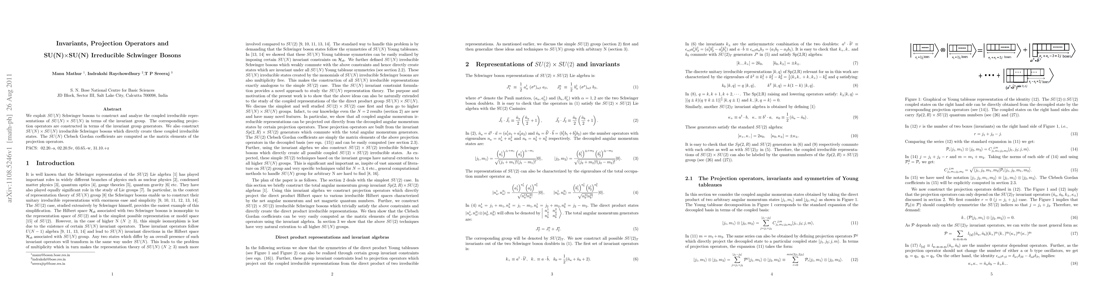 We exploit SU(N) Schwinger bosons to construct and analyze the coupled irreducible representations of $SU(N) \times SU(N)$ in terms of the invariant group. The corresponding projection operators are constructed in terms of the invariant group generators. We also construct $SU(N) \times SU(N)$ irreducible Schwinger bosons which directly create these coupled irreducible states. The SU(N) Clebsch Gordan coefficients are computed as the matrix elements of the projection operators.