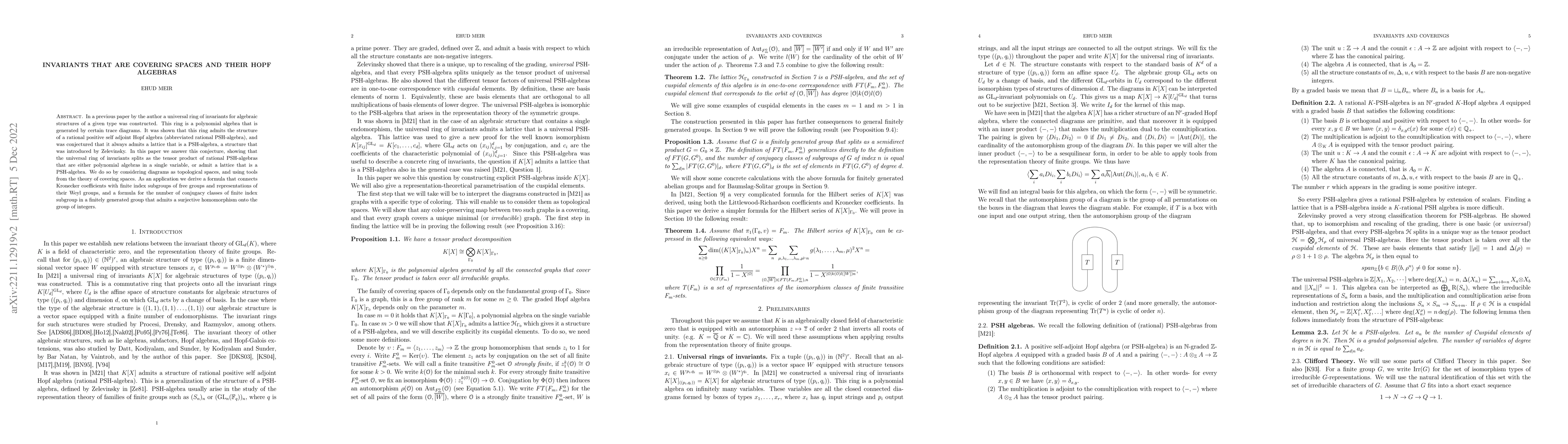 In a previous paper by the author a universal ring of invariants for algebraic structures of a given type was constructed. This ring is a polynomial algebra that is generated by certain trace diagrams. It was shown that this ring admits the structure of a rational positive self adjoint Hopf algebra (abbreviated rational PSH-algebra), and was conjectured that it always admits a lattice that is a PSH-algebra, a structure that was introduced by Zelevinsky. In this paper we answer this conjecture, showing that the universal ring of invariants splits as the tensor product of rational PSH-algebras that are either polynomial algebras in a single variable, or admit a lattice that is a PSH-algebra. We do so by considering diagrams as topological spaces, and using tools from the theory of covering spaces. As an application we derive a formula that connects Kronecker coefficients with finite index subgroups of free groups and representations of their Weyl groups, and a formula for the number of conjugacy classes of finite index subgroup in a finitely generated group that admits a surjective homomorphism onto the group of integers.