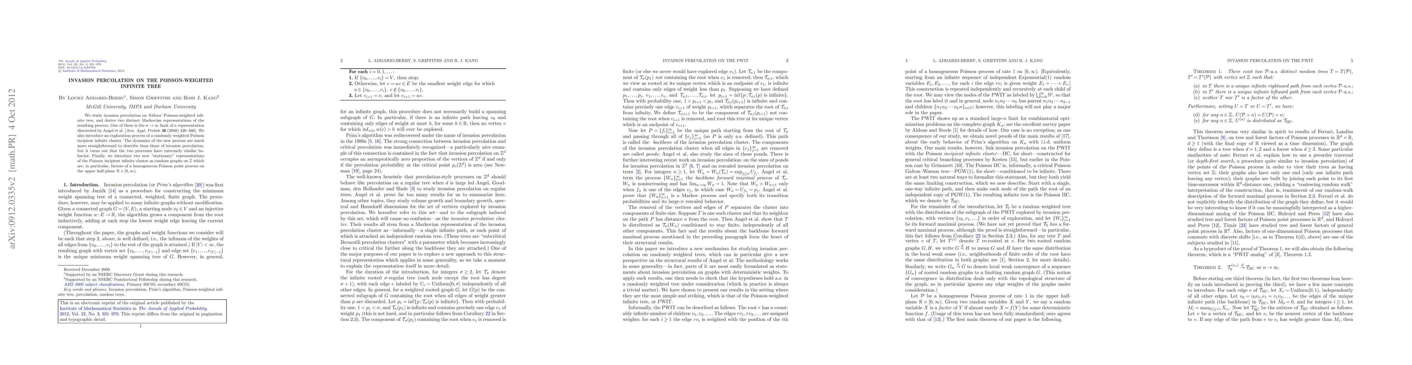 This paper explores invasion percolation on Aldous' Poisson-weighted infinite tree, deriving two Markovian representations of the process. It introduces an exploration process with simpler dynamics that closely mirrors the invasion percolation behavior, and presents two stationary representations of the Poisson incipient infinite cluster as random graphs.