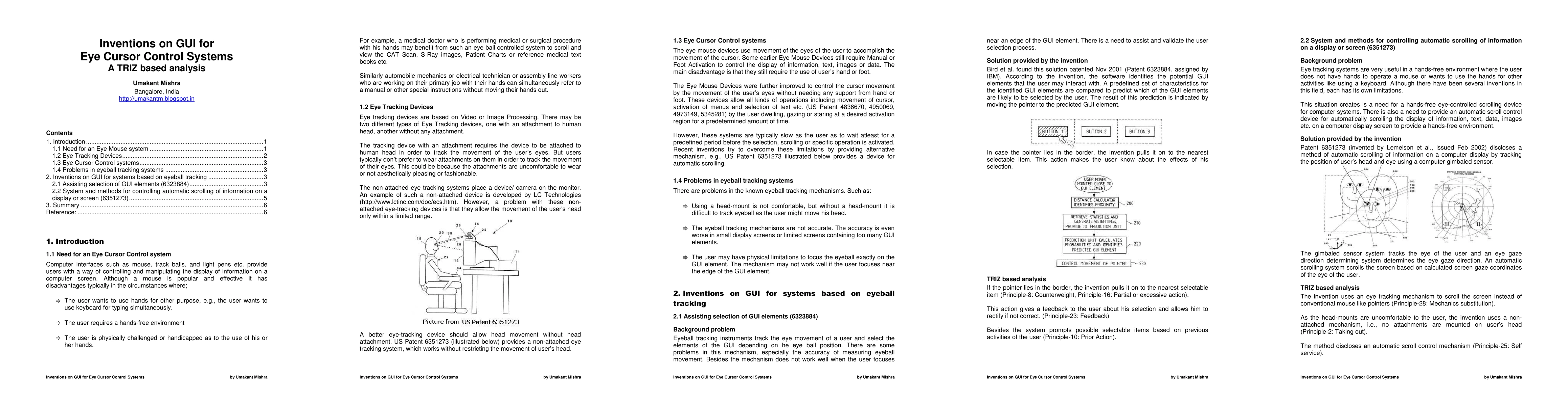 This paper explores the complexities of operating GUIs with eye-cursor controls, highlighting situations where such technology is beneficial. It introduces several inventions aimed at overcoming the challenges of prior eye-cursor systems, enhancing usability in scenarios where traditional input devices are impractical.