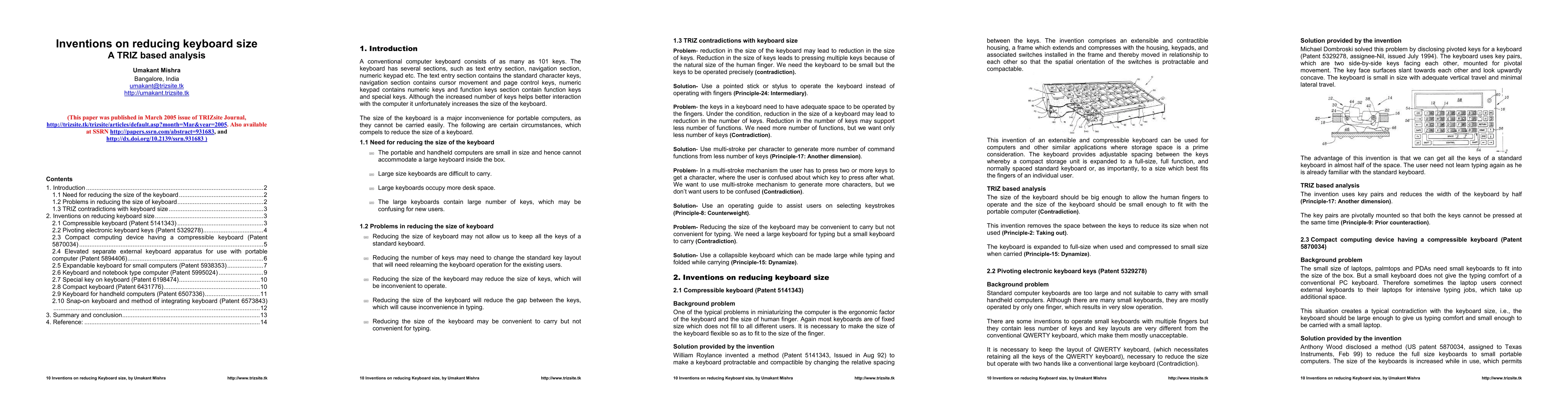 This paper contributes to the field by applying TRIZ principles to analyze inventions focused on reducing keyboard size, offering a systematic approach to resolving the size-comfort contradiction.