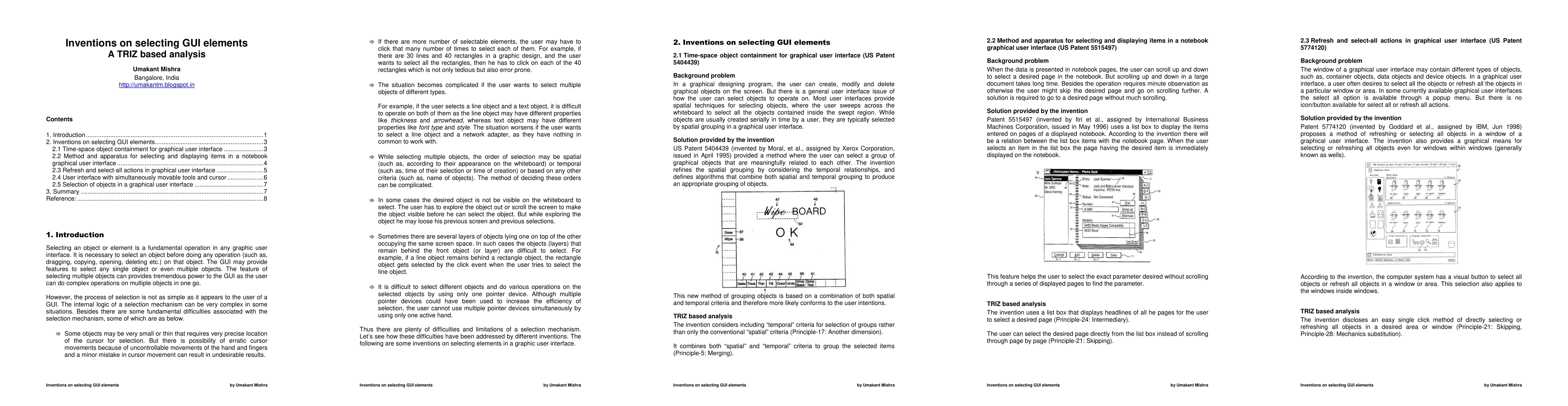 This paper explores fundamental difficulties with GUI selection mechanisms and highlights solutions from US patent database inventions, focusing on complexities and power of multi-object selections.