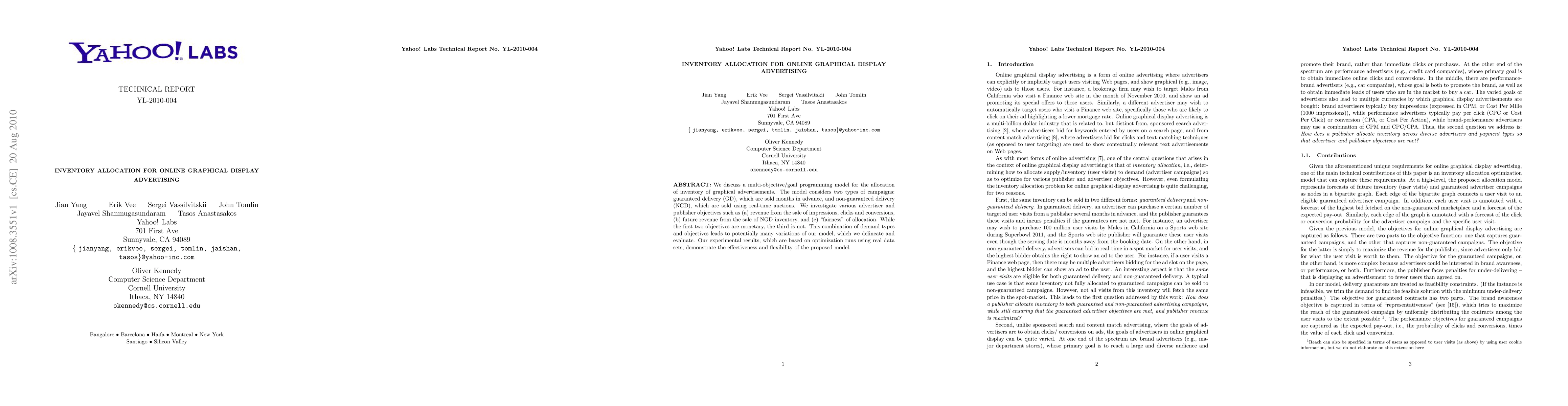 A new model is proposed for allocating inventory in online graphical display advertising, balancing advertiser revenue objectives with fairness considerations, to improve campaign efficiency and effectiveness.
