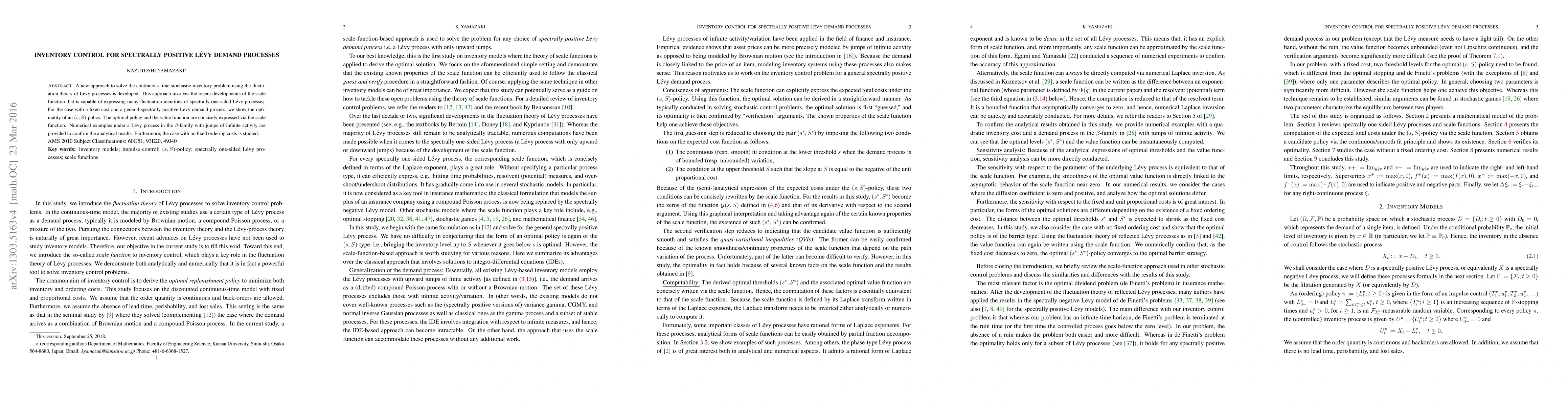 This paper develops a new method for continuous-time stochastic inventory control using Levy processes, showing the optimality of an (s,S)-policy for spectrally positive Levy demand processes. The optimal policy and value function are expressed via the scale function, with numerical examples confirming the analytical results.