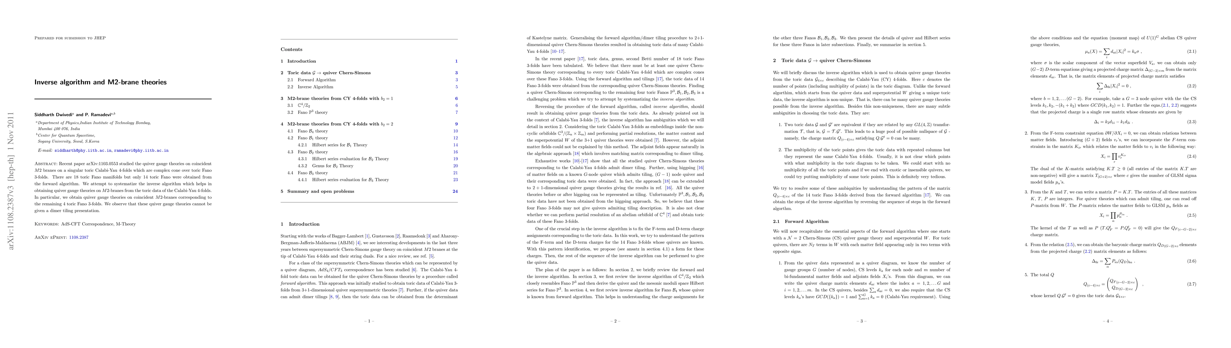 This paper develops an inverse algorithm to construct quiver gauge theories on coincident M2-branes from the toric data of singular Calabi-Yau 4-folds, successfully obtaining theories for the remaining four toric Fano 3-folds not covered by the forward algorithm, and notes these theories lack a dimer tiling presentation.